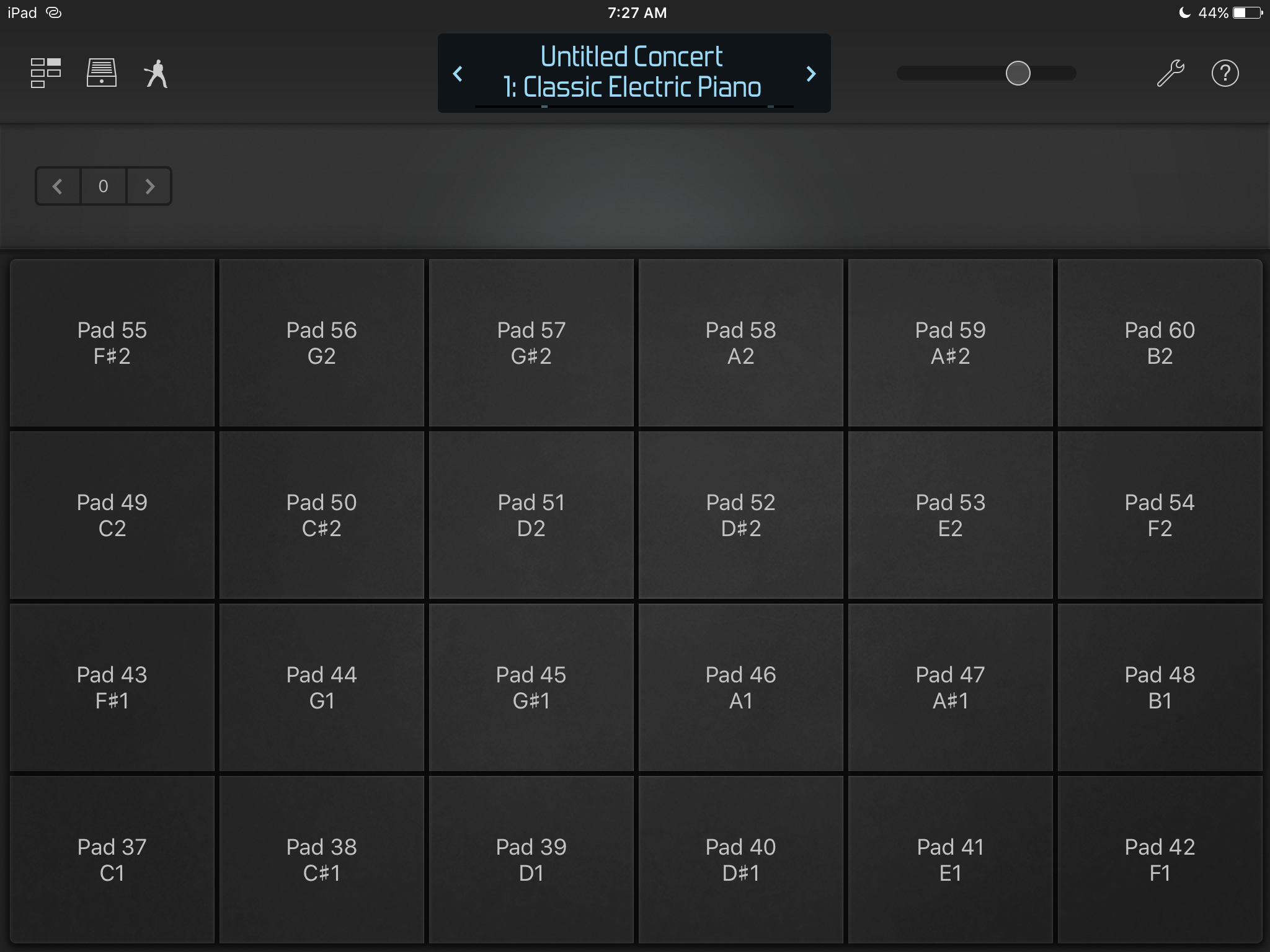 1. Keyboard. This is a standard keyboard, but it offers quite a few little tweaks that make it interesting. You can glissando with this keyboard (perfect for lead sounds), play using scale mode which will turn the screen into a fail-proof keyboard with just the notes in the scale you select. There’s also the option to change octaves, adjust key size, and even use a sustain pedal “button”. This keyboard is great for playing MainStage in unusual ways live, and I found it really inspiring.